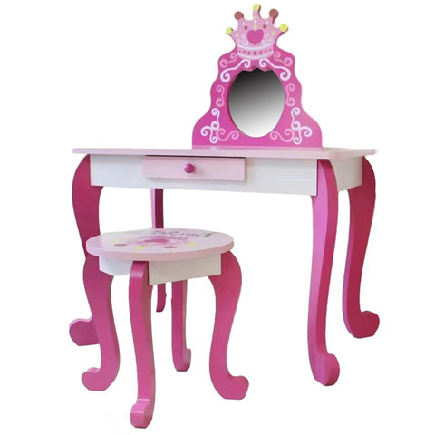 Schönes Weihnachts geschenk Prinzessin Hocker Kinder Schmink tisch Mädchen Make-up Tisch Stuhl rosa Holz Kinder Schmink tisch für Schlafzimmer
